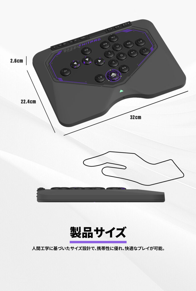 癖のない操作感と人間工学に基づいたサイズ形状かつプレイヤーに煩わしさを感じさせない設計です。